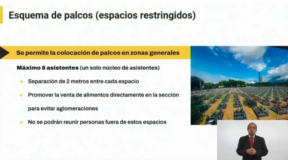- Los conciertos serán con un aforo del 25 por ciento. No está permitido realizaros en estadios