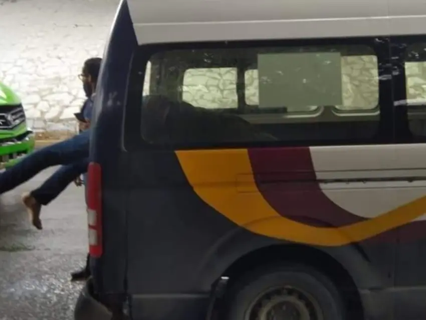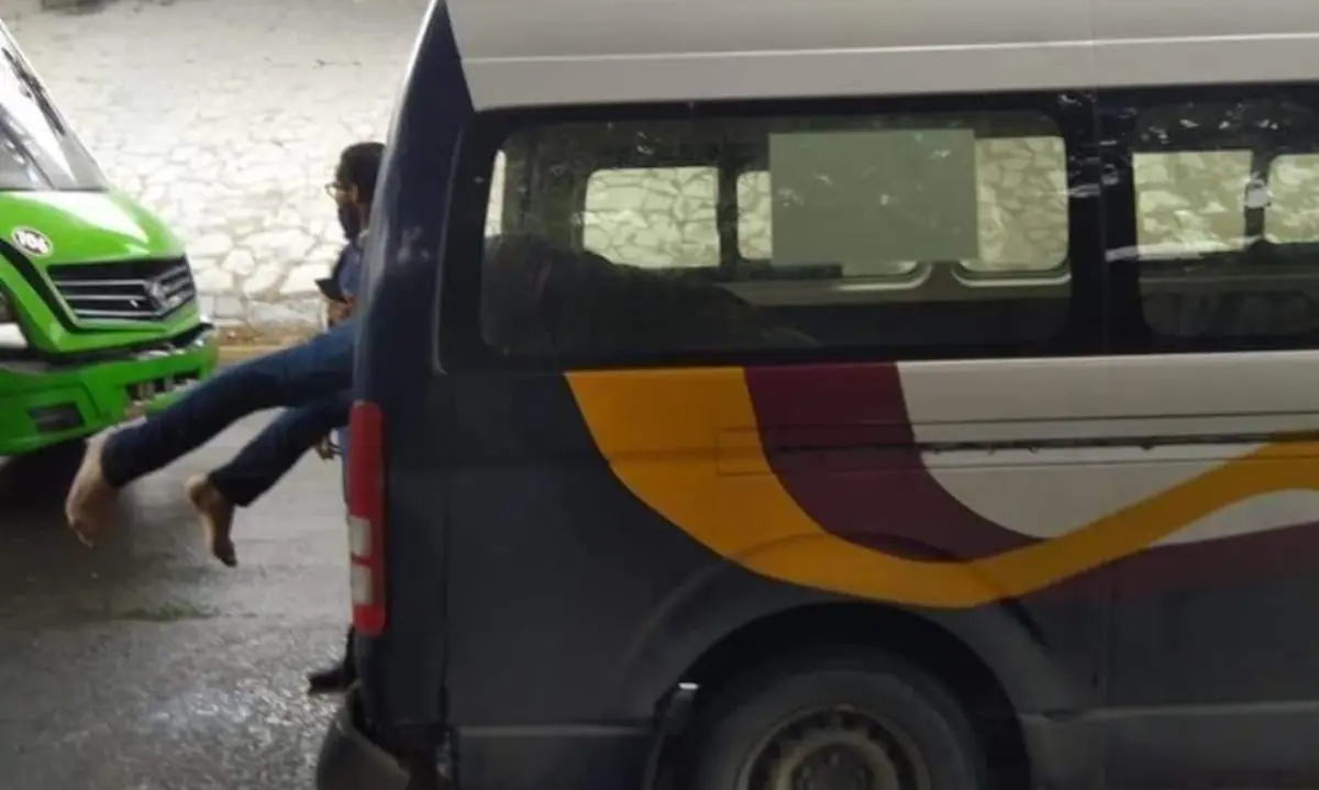 Con la fuerza del impacto, rompió el vidrio trasero, quedando la parte superior de su cuerpo dentro de la combi, mientras que la inferior (pies y piernas) quedaron fueron de la unidad, lo que conmocionó a los pasajeros y conductores que circulaban.
