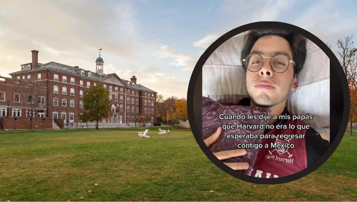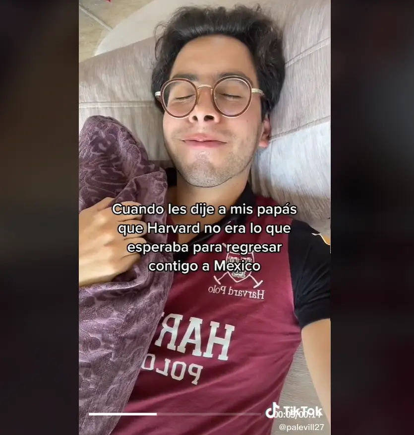 "Cuando les dije a mis papás que Harvard no era lo que esperaba para regresar contigo a México", confesó el usuario @palevill27 en un video donde tiene puesta la playera de Harvard.