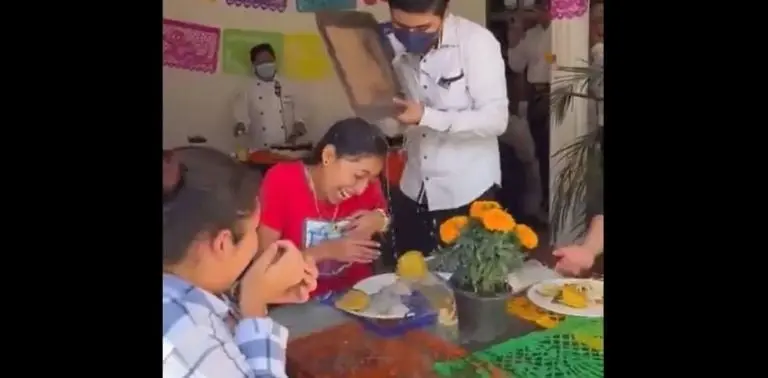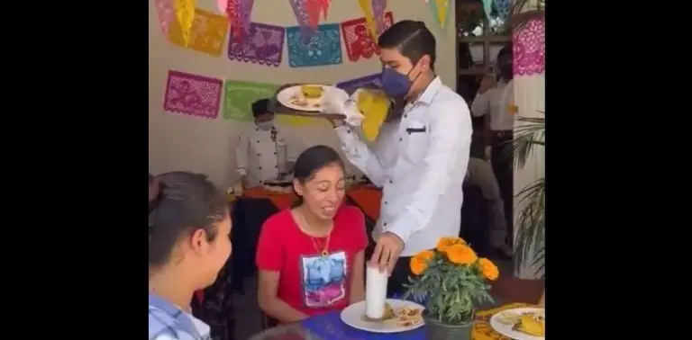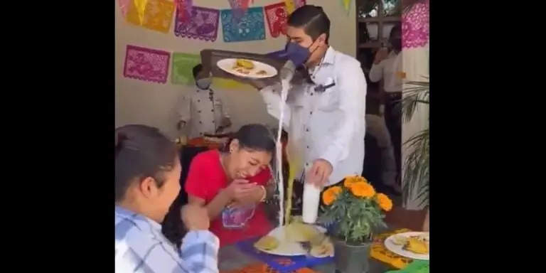 Según se ve en el video, las jóvenes que se encontraban en el restaurante ya habían ordenado su comida. A juzgar por las imágenes, estaban en un lugar de comida mexicana, pues las mujeres tenían en sus platillos quesadillas, además de que el sitio estaba adornado con motivo del Día de Muertos.