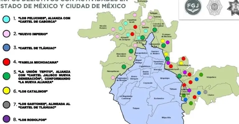 Estas células criminales fueron identificadas como: Los Peluches (en alianza con el Cartel de Caborca), la Nuevo Imperio, el Cártel de Tláhuac, la Familia Michoacana, la Unión de Tepito (en alianza con el Cártel Jalisco Nueva Generación formando así “La Nueva Alianza”), Los Catalinos, Los Gastones (alineada al Cartel de Tláhuac) y Los Rodolfos.