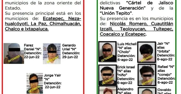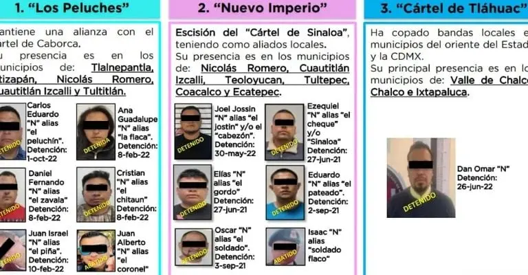 En tanto, el Cártel de Tláhuac, fundado en esa alcaldía por Felipe de Jesús Pérez Luna, alias “El Ojos”, tiene bandas locales en municipios del oriente del Estado y la CDMX. Se ha expandido a los municipios de Valle de Chalco, Chalco e Ixtapaluca y es identificado como generador de violencia, dedicado a la extorsión y distribución de droga.