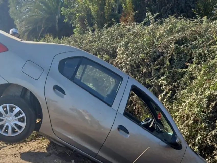 "Mi primera clase de manejo, ¿ustedes bien?", escribió la usuaria junto a una foto de un automóvil Renault Logan atorado en unas ramas.