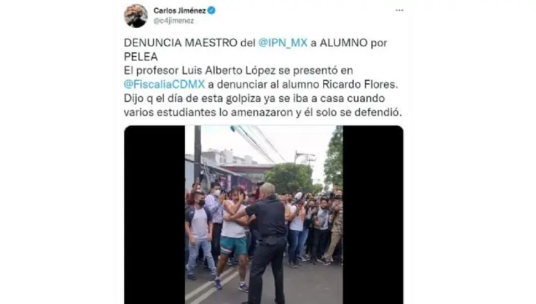 El periodista Carlos Jiménez, que se especializa en temas de seguridad, reportó en su cuenta de Twitter que el profesor del IPN se presentó en la Fiscalía capitalina para denunciar al alumno Ricardo Flores.