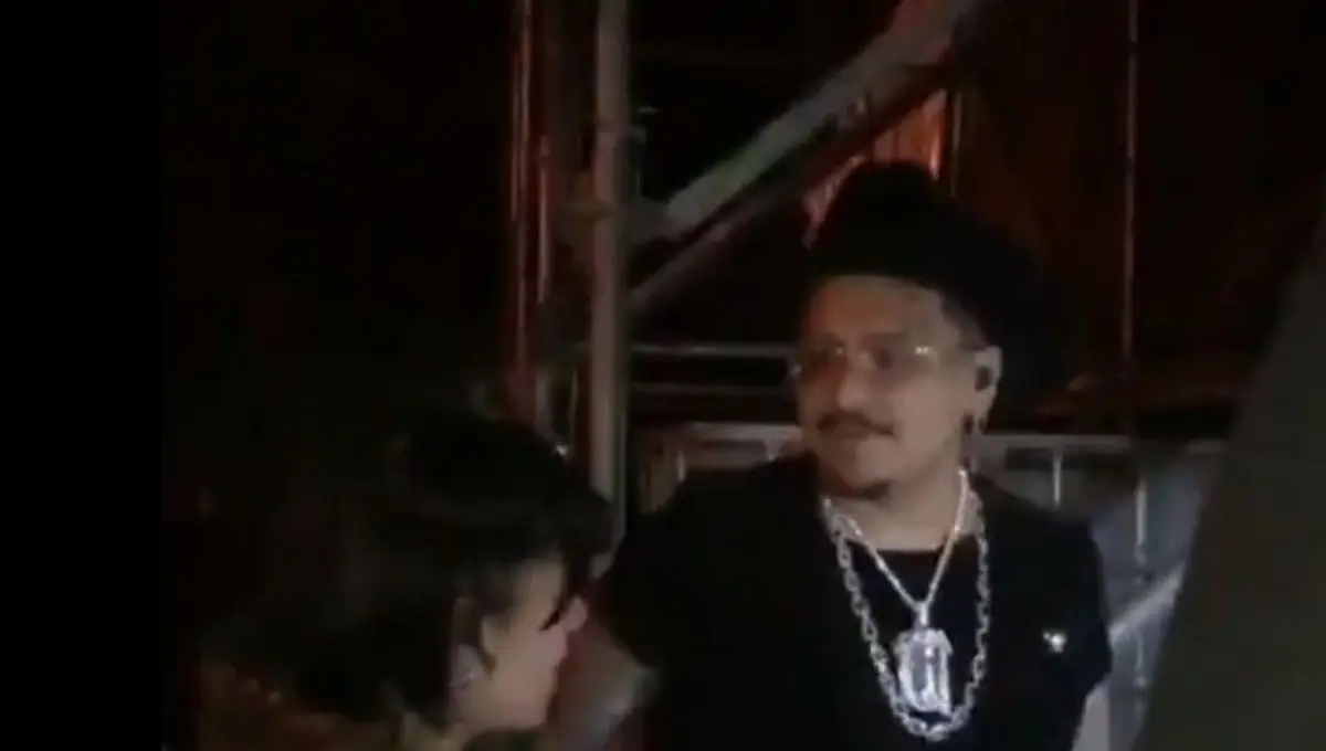 En uno de los videos, se ve a Christian Nodal llegar a uno de sus conciertos tomado de la mano de Cazzu, de 28 años de edad. Previo a subir al escenario, Nodal se detuvo para luego darle un beso, el cual fue correspondido por la rapera.