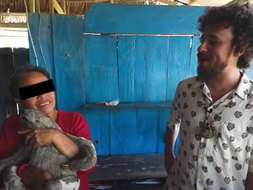 Durante su viaje, el youtuber visitó la comunidad Puerto Miguel, donde una de las familias le permitió entrar a su casa y le enseñó que tenían de mascotas a unos loros, un perezoso llamado Miguel y un mono capuchino de nombre Pepe que tenían encerrado en una jaula porque según su dueña era muy travieso.