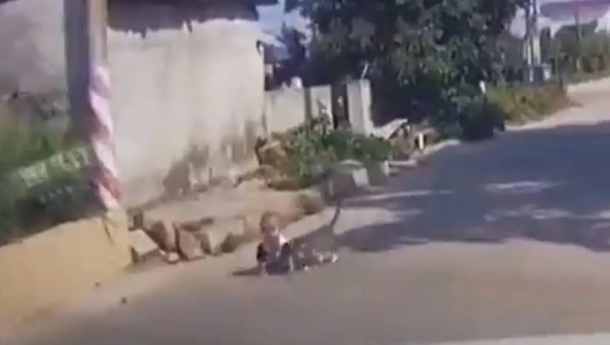 Se desconoce la fecha y el lugar donde fue captado el video, pero en las imágenes se ve que un bebé, quien al parecer se salió de su casa, gatea sobre la calle sin que se observe a ningún adulto a su alrededor.