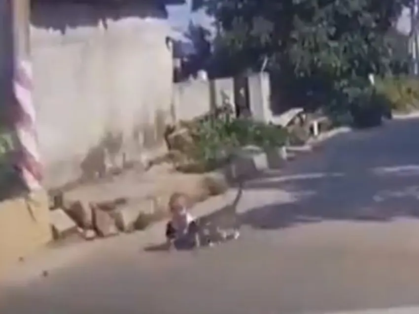 Un gato que se encontraba en la calle, con la ayuda de todo su cuerpo, empujó al menor hacia la banqueta, esto con el objetivo de que el bebé no se fuera a la mitad de la vialidad por donde transitan los automovilistas.