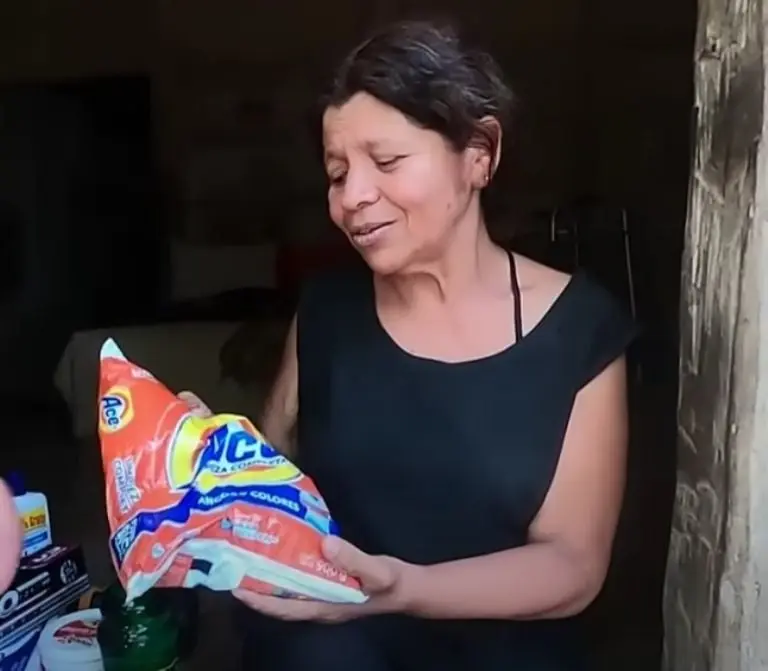 En un video difundido en la cuenta de TikTok @arianaviverosoficial, se puede ver cómo un hombre le entregó a la señora una caja con jabón de ropa, cloro, un jugo de naranja, entre otros productos, pero la mujer recibió molesta la ayuda porque no era lo que quería.