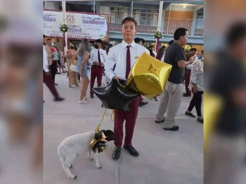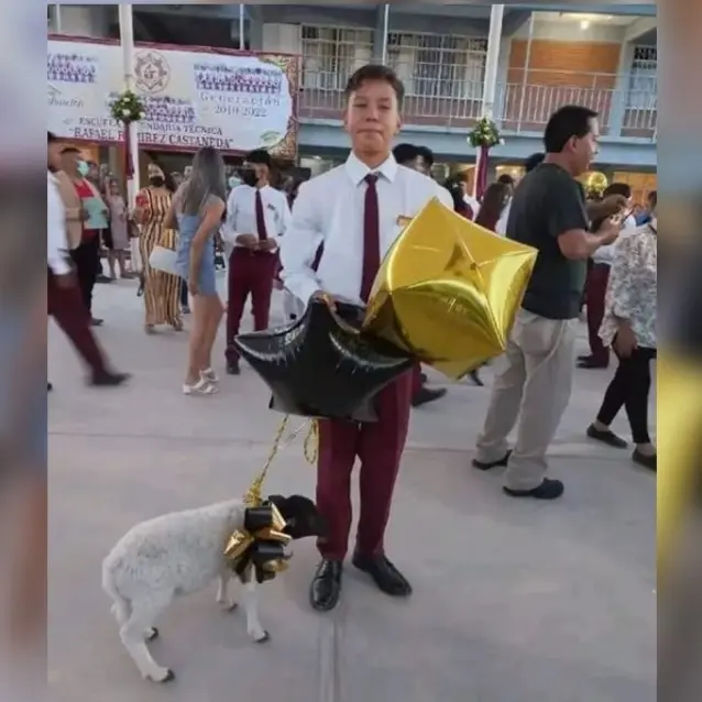 El concluir un año escolar es para los estudiantes un logro. Hay padres de familia que reconocen ese esfuerzo y más cuando se da alguna graduación. Tal es el caso de un joven de nombre Manuel, quien como regalo por haber terminado la secundaria recibió un borreguito.