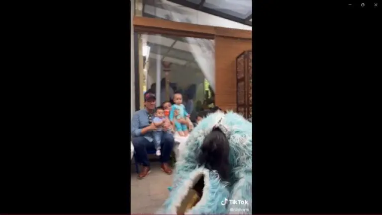 Si bien los adultos no paran de reír al ver a las botargas, son los menores quienes se ven visiblemente asustados, pues uno de ellos comienza a llorar en las piernas de su padre mientras que otro se queda en un rincón aferrado a su papá.