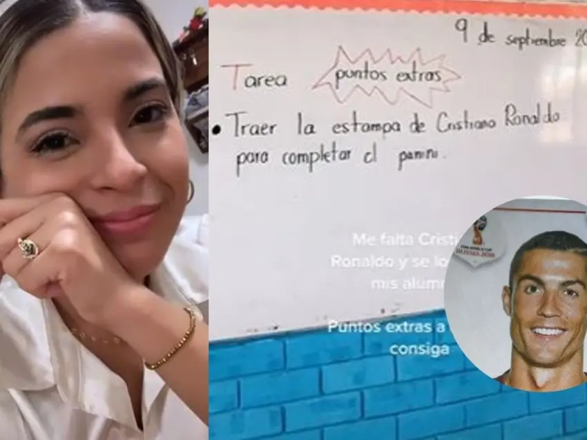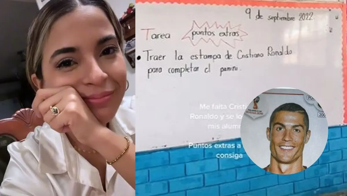La maestra de primero de primaria, Daniela Pérez Cruz, subió a su cuenta de TikTok un video en el que le lee la tarea que le dejó a sus alumnos para el fin de semana, la cual consistía en conseguir la estampa de Cristiano Ronaldo del álbum Panini del Mundial de Qatar 2022.