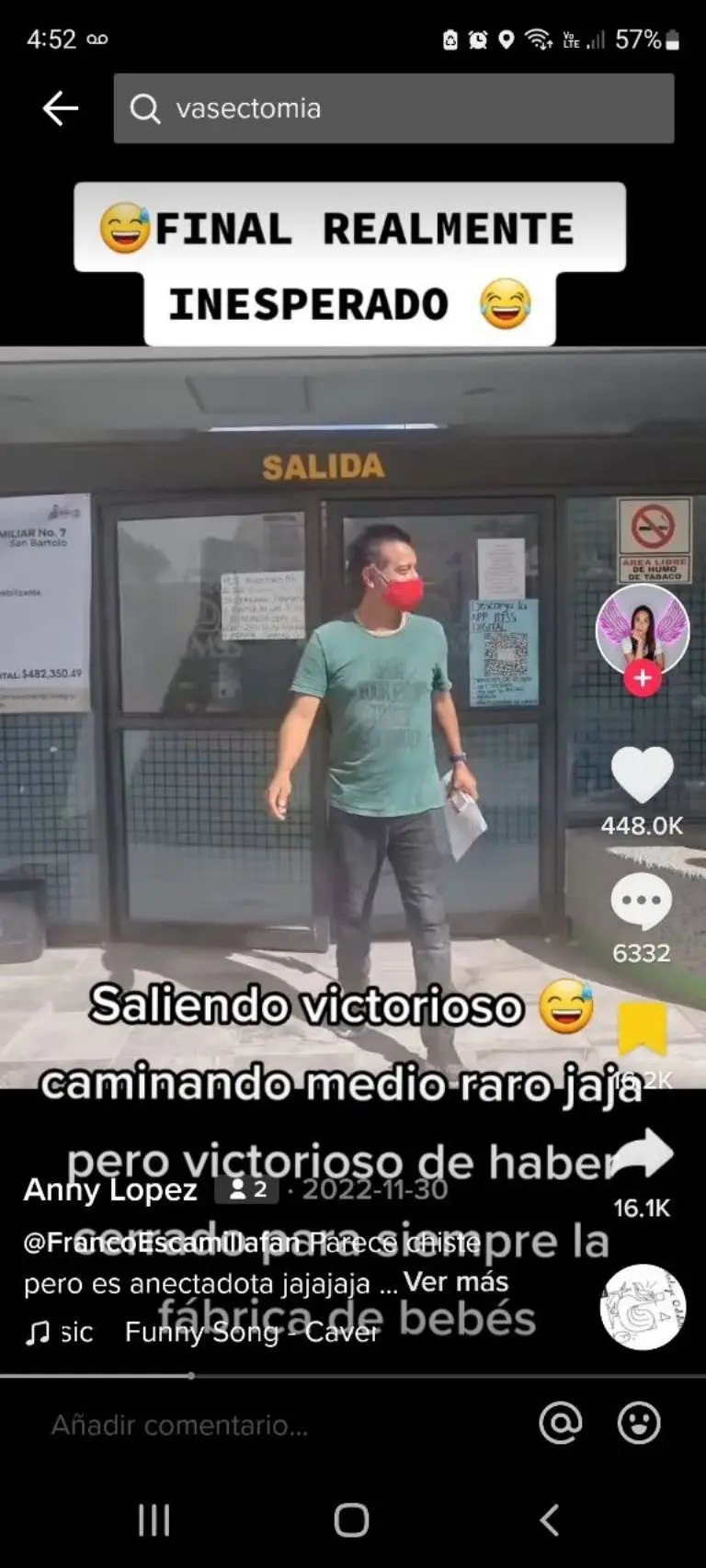 "Saliendo victorioso. Caminando medio raro, pero victorioso de haber cerrado para siempre la fábrica de bebés", dijo la usuaria.