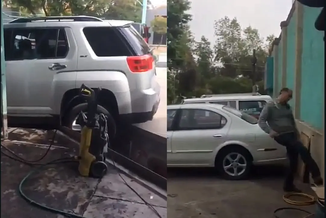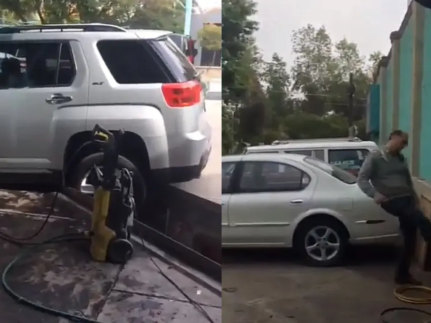 En todo lugar siempre es necesario seguir instrucciones para no tener accidentes. Sin embargo parece que hay personas que no les interesan estas cuestiones y trae consecuencias, así como le pasó a este señor que por no observar bien por dónde sacaba su camioneta en el autolavado quedó atrapado en un hueco de la instalación del negocio.