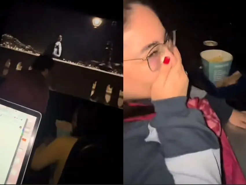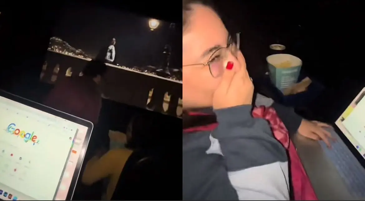 La chica se llevó su computadora al cine para trabajar mientras veía la película y en plena función le marca su jefe, obviamente tienes que ver la reacción que se volvió viral ¿tú qué hubieras hecho?