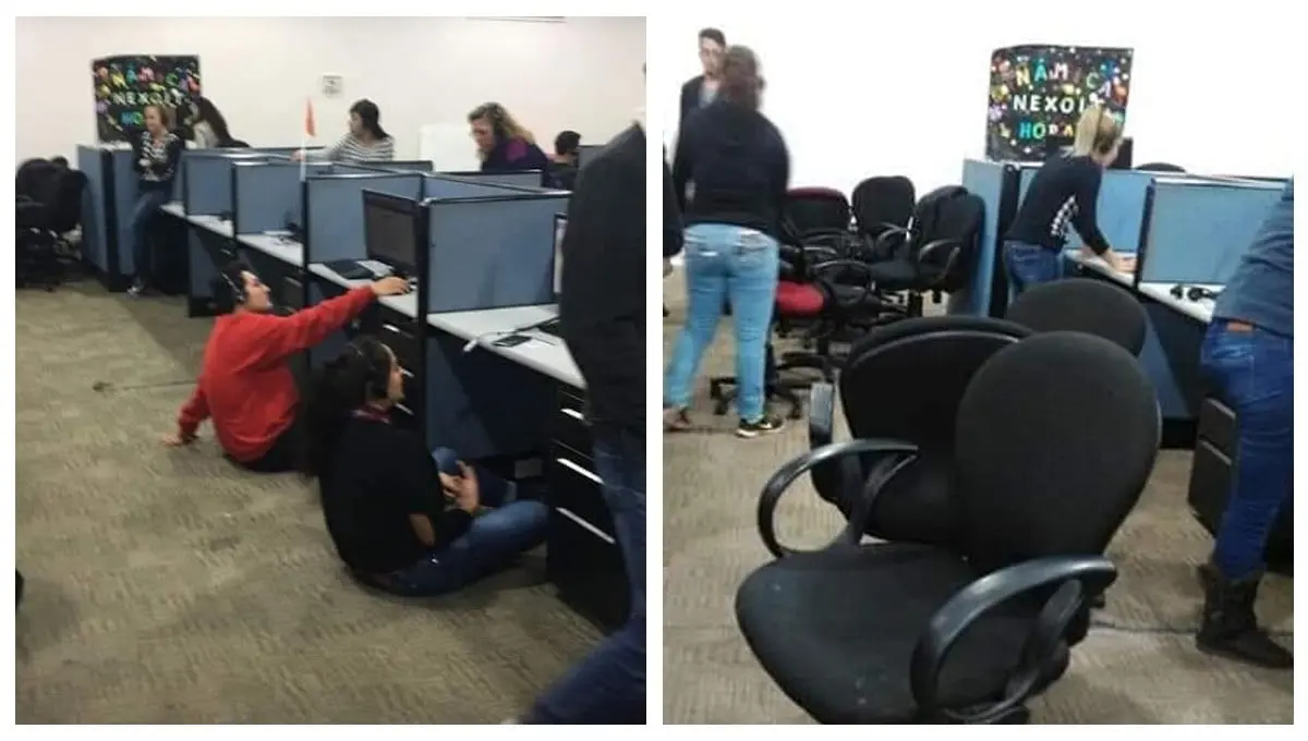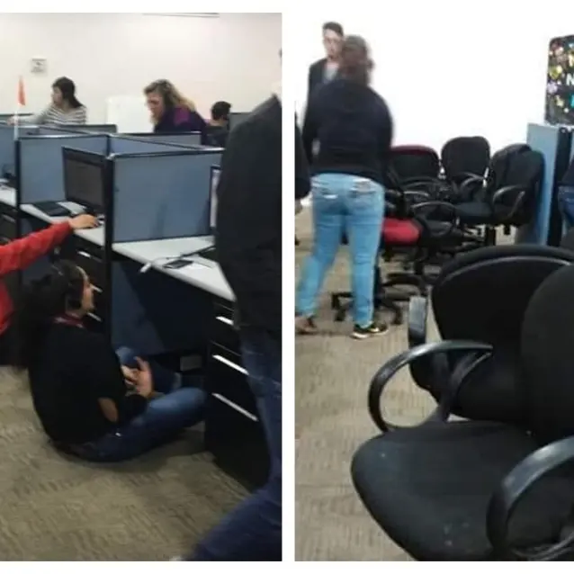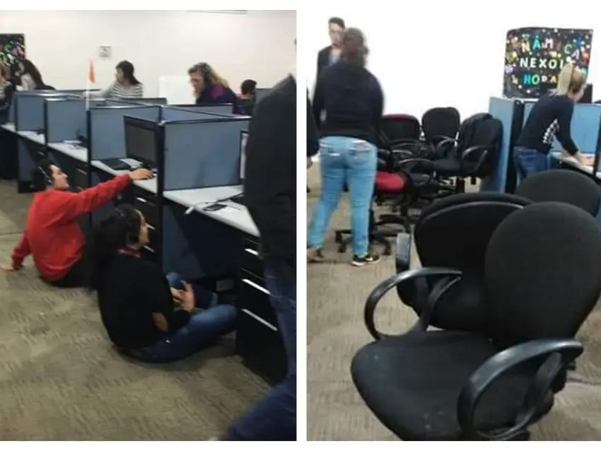 En una fotografía que compartió la usuaria del tiempo en que laboró en ese call center, se puede ver que algunos de sus compañeros estaban trabajando sentados en el piso porque ya les habían quitado sus sillas, mientras que otros empleados optaron por sentarse en los escritorios.