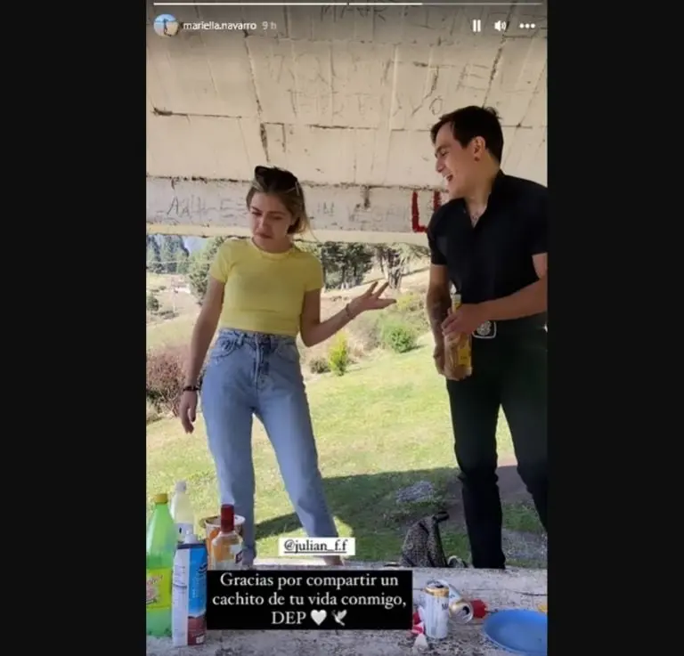 En otra historia, la amiga del cantante publicó un video donde estaban juntos cantando "Acá entre nos" y escribió: "Gracias por compartir un cachito de tu vida conmigo, DEP". Sin embargo, horas más tarde la joven eliminó las historias y su foto de perfil, pero medios como Imagen y Cultura Pop recuperaron los mensajes que escribió.