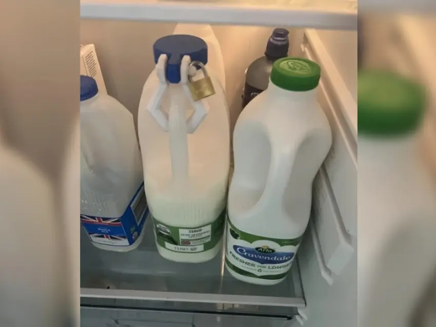 Fue a través de Reddit que un usuario compartió una fotografía del refrigerador de la oficina, donde se aprecia que uno de sus compañeros le colocó un candado a su botella de leche, a lo que el trabajador cuestionó si creían que su colega era un tacaño o simplemente trataba de proteger sus alimentos.