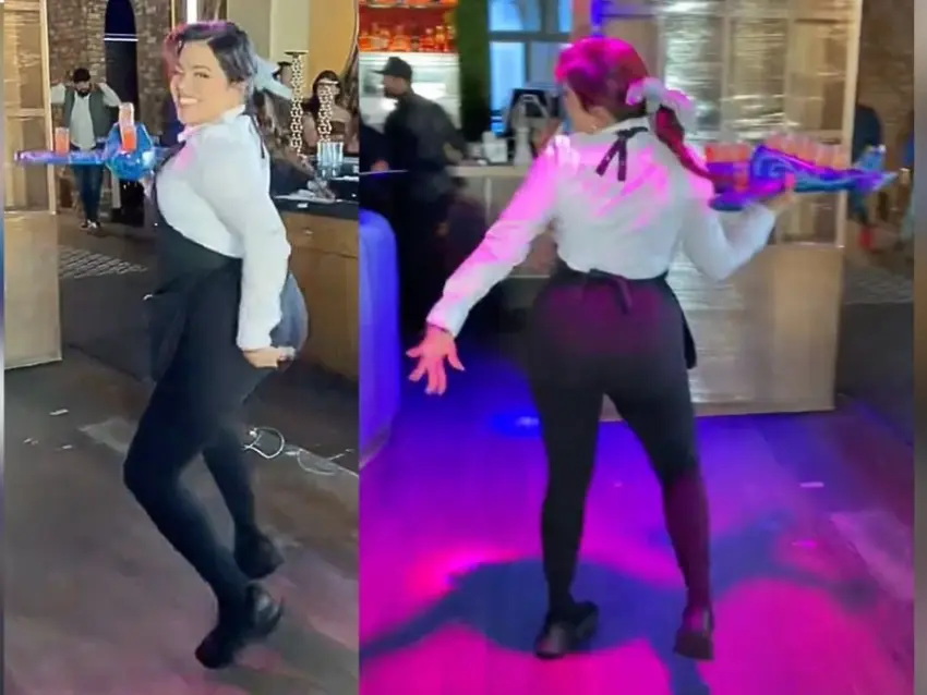 Los coquetos movimientos y bailes que Druscilla realiza mientras lleva bandejas de shots a las mesas de clientes en el restaurante donde trabaja se han vuelto virales en TikTok, e incluso han sido compartidos por personalidades del espectáculo como la reconocida cantante colombiana Karol G. Resulta que Druscilla Delgado no solo es mesera, sino también actriz con residencia en California.