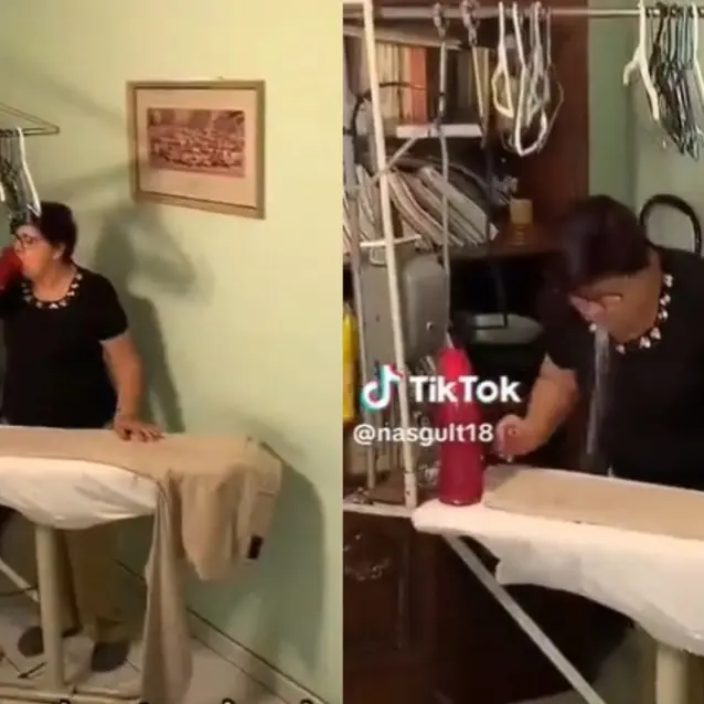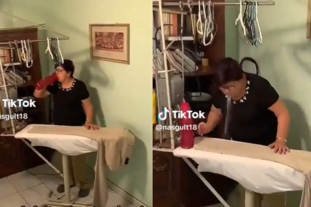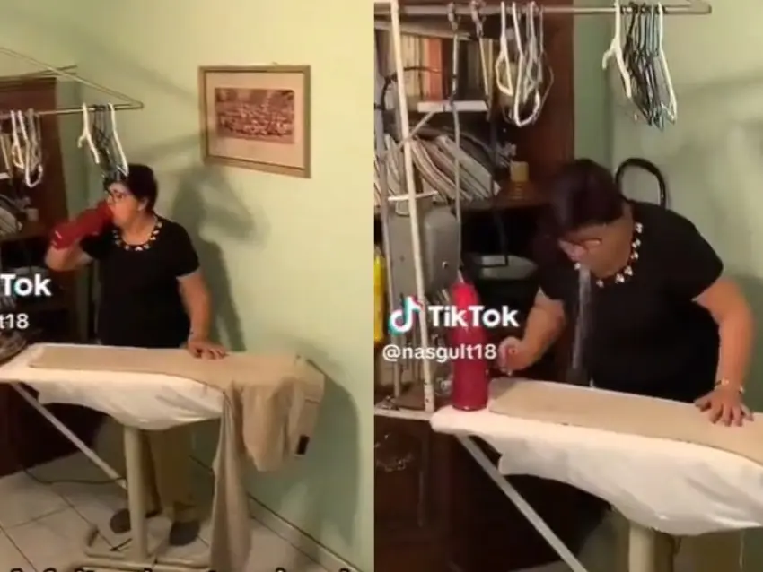 El video en cuestión muestra a la madre planchando muy casual la ropa de sus seres queridos. La actividad cotidiana no es lo que llamó la atención de los internautas, sino lo que utiliza para llevarla a cabo. En medio del proceso de planchado, la madre toma una botella de agua cercana y da un sorbo antes de escupir el agua directamente sobre la prenda. Acto seguido, continúa planchando la prenda mojada.