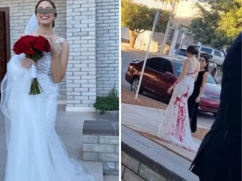El día de la boda, la familia del novio decidió no ir al enlace matrimonial, pero prepararon todo un espectáculo para evitar que el compromiso se llevara a cabo. Contrataron a un grupo de personas asignadas para arrojar pintura roja en el vestido de la novia antes de que entrara a la iglesia.