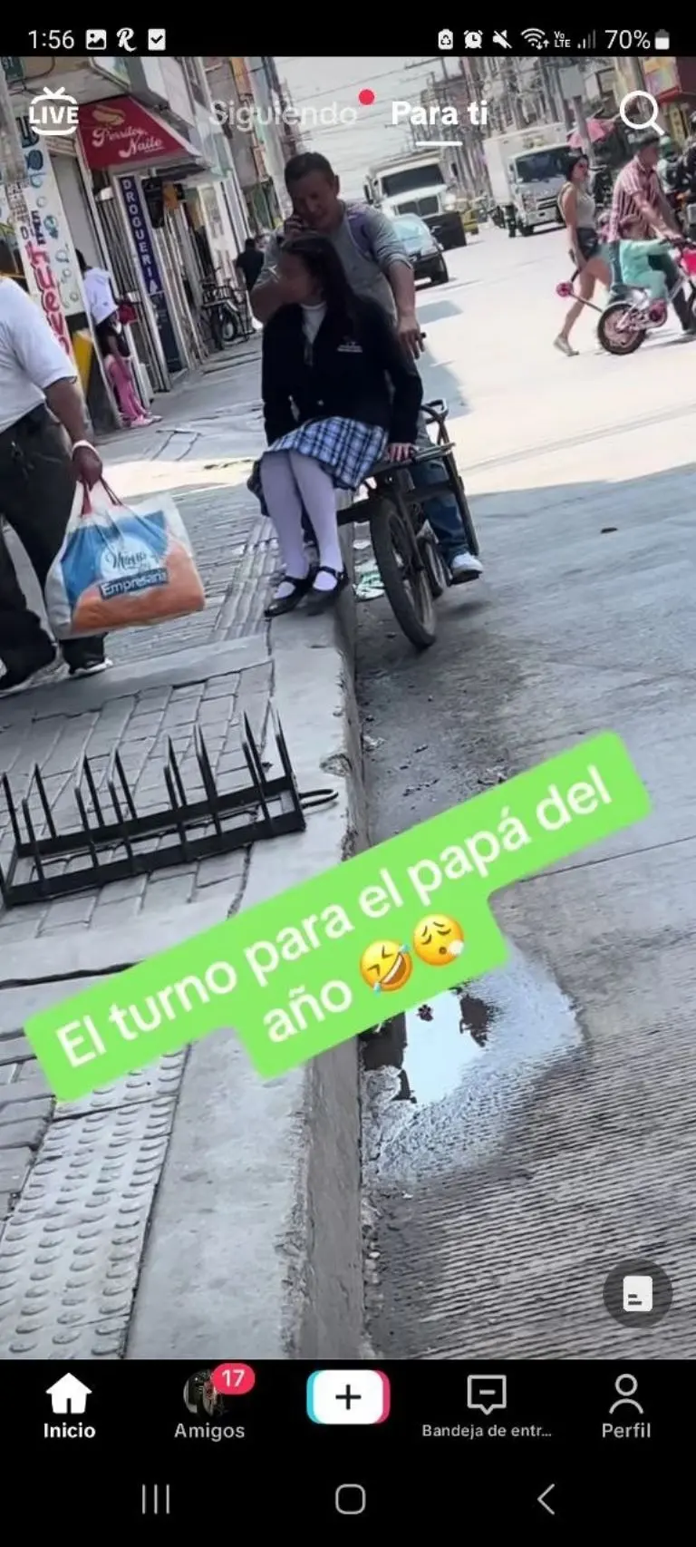 La escena, captada en una calle, muestra al padre aguardando en su bicicleta mientras su hija comparte momentos románticos con su pareja. Esta inusual actitud generó polémica entre los usuarios, quienes expresaron su sorpresa ante la aparente falta de celos o sobreprotección por parte del progenitor.