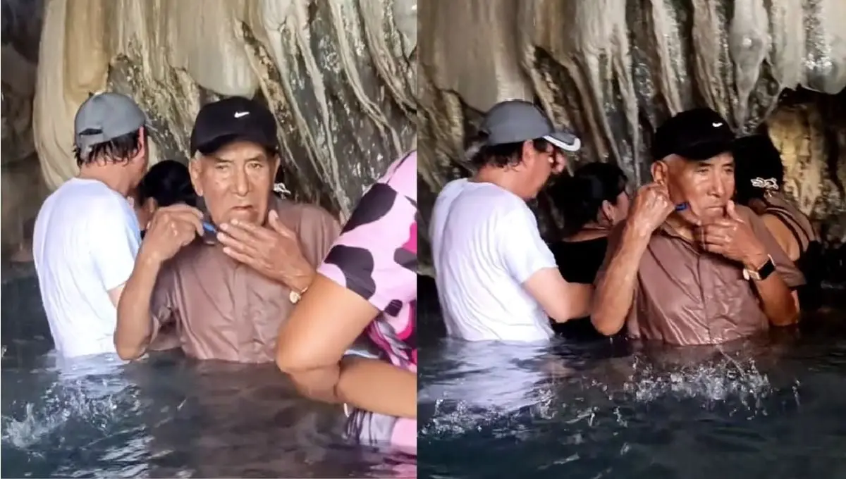 Un hombre causó indignación en redes sociales tras ser captado rasurándose en las Grutas de Tolantongo frente a los visitantes