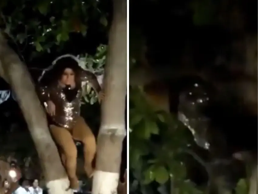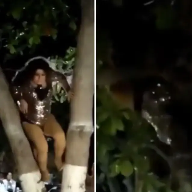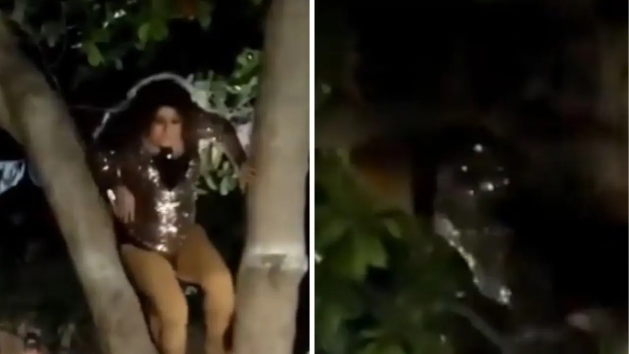 Una imitadora de Gloria Trevi decidió llevar su show a otro nivel y subió a un árbol al ritmo de la canción Dr. Psiquiatra.