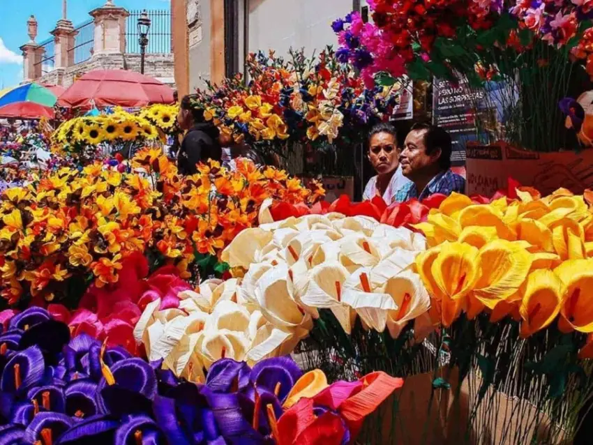El epicentro de la festividad es el Jardín de la Unión, donde los vendedores inundan el ambiente con el aroma de flores frescas y la música de las estudiantinas resuena en cada rincón. Los visitantes pueden recorrer los puestos repletos de arreglos florales y disfrutar de la atmósfera festiva que envuelve la ciudad.