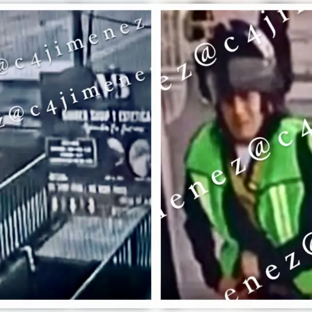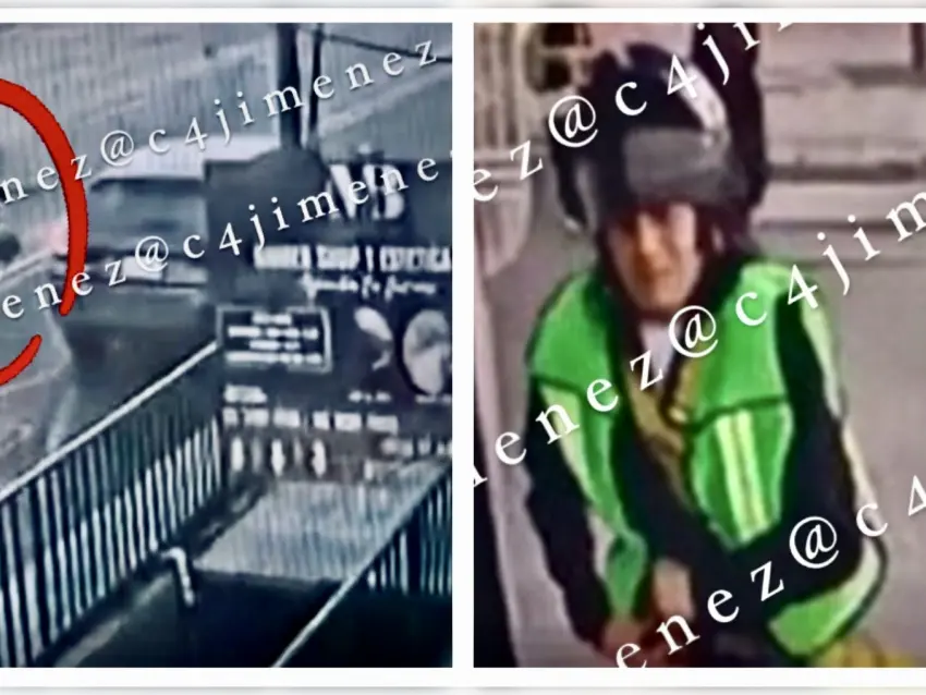 El material fue captado el miércoles 14 de mayo, exactamente una semana antes del crimen. En él se observa a un hombre usando un chaleco verde fosforescente, como los empleados de obras viales, un arnés negro y un casco de motociclista que nunca se quitó, a pesar de no estar sobre ningún vehículo. Esta combinación le permitió pasar desapercibido ante los peatones y conductores que transitaban por la zona.