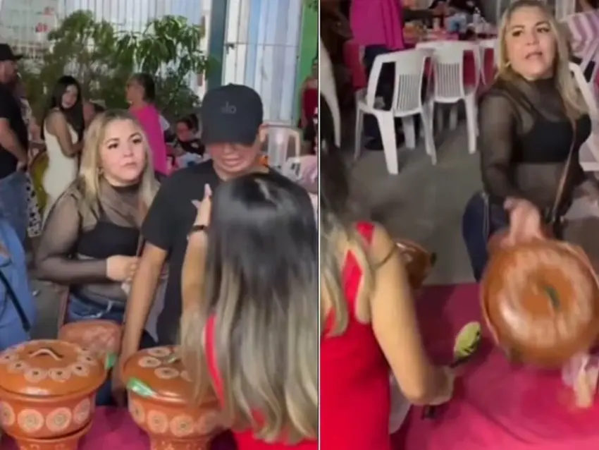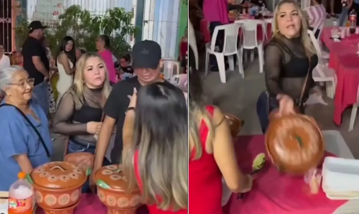 En un video compartido en TikTok por el usuario Danny (@cazzatermitas), se observa cómo la mujer pide un taco extra, pese a que la organización del evento había fijado el límite de cinco por persona. Al recordarle la regla, Damaris explotó: lanzó insultos y aventó una cazuela de barro que terminó hecha pedazos en el suelo.