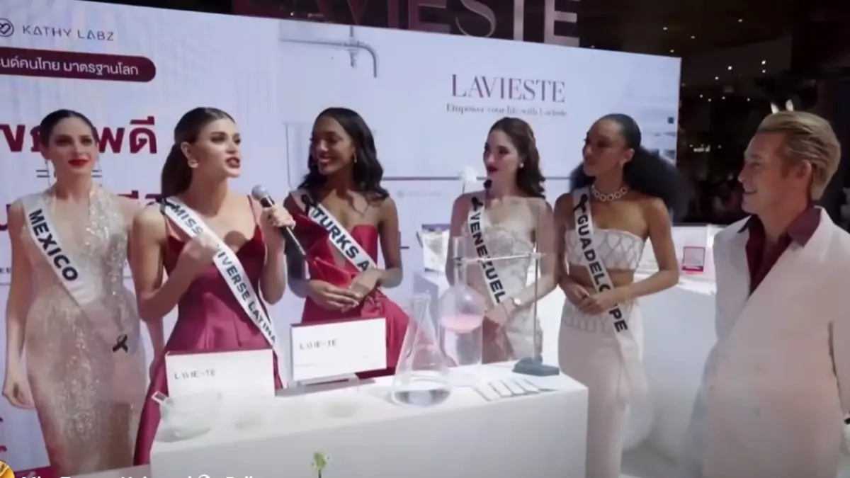 Durante un video que se ha viralizado en redes sociales, se puede ver que la marca de belleza invitó a las representantes de Vietnam, Filipinas, Costa de Marfil, Guadalupe, Venezuela, Islas Turcas y Caicos, México y "Miss Universe Latina" a participar en una dinámica de preguntas y respuestas sobre su estancia en Tailandia.
