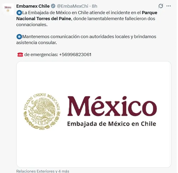 Cinco turistas, dos mexicanos, dos alemanes y una británica, murieron en el Parque Nacional Torres del Paine, en la Patagonia chilena, luego de ser sorprendidos por un violento temporal mientras realizaban una ruta de trekking de alta dificultad. La Delegación Presidencial de Magallanes confirmó también que otras cuatro personas lograron ser rescatadas con vida, lo que permitió cerrar el operativo de búsqueda.