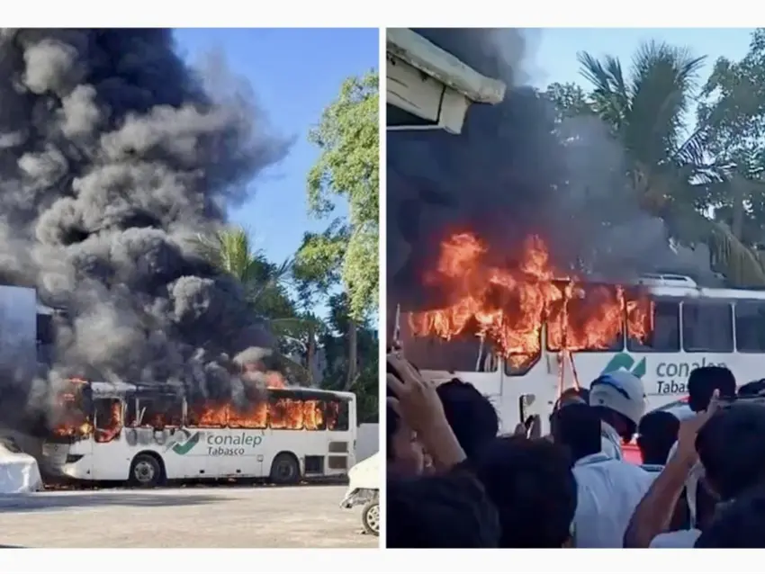 El momento más crítico ocurrió cuando un autobús escolar fue incendiado por un número aún no determinado de alumnos. Las llamas se propagaron de forma rápida, provocando una densa columna de humo que obligó a evacuar áreas aledañas. Personal del Instituto de Protección Civil del Estado de Tabasco (IPCET) y el cuerpo de bomberos acudieron de inmediato al lugar, lograron sofocar el fuego y confirmaron que no hubo personas lesionadas.