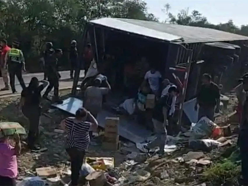 El caso más evidente ocurrió en Montemorelos, donde un tráiler cargado de abarrotes volcó y, antes de cualquier acción de auxilio, fue prácticamente desmantelado por decenas de personas que acudieron atraídas por la mercancía regada en la Carretera Nacional.