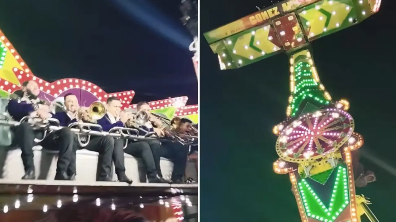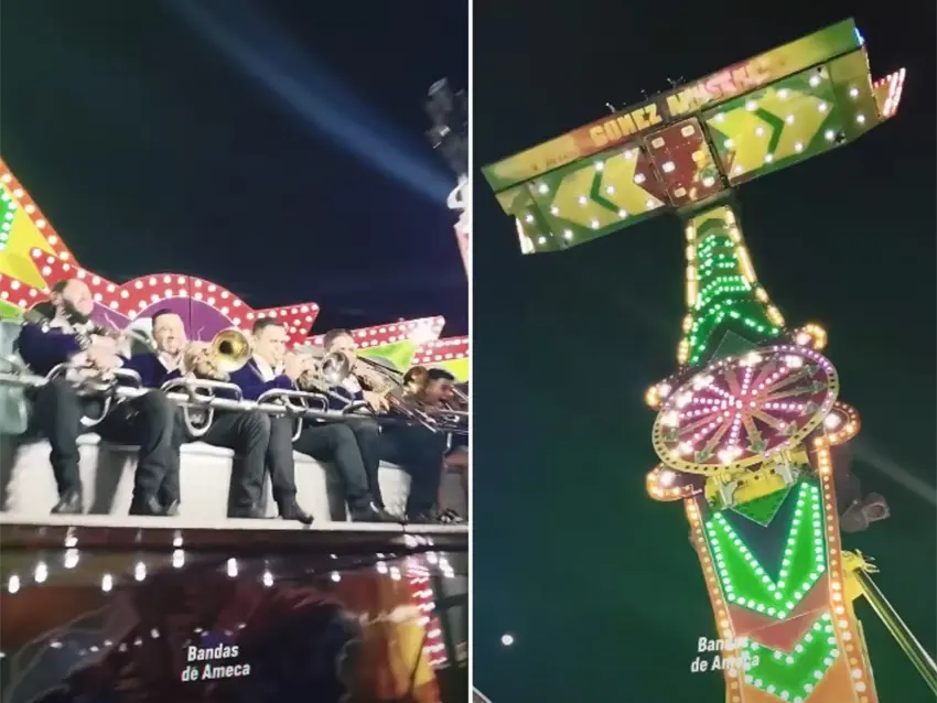 Un episodio tan peculiar como arriesgado volvió a poner el ingenio mexicano en el centro de las redes sociales, luego de que un grupo de músicos de banda sinaloense fuera captado interpretando sus temas en plena operación de un juego mecánico. La escena quedó registrada en un video que rápidamente se viralizó y que mostró a los artistas disfrutando de la adrenalina sin dejar de tocar sus instrumentos.