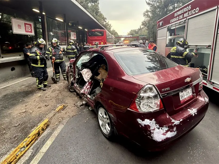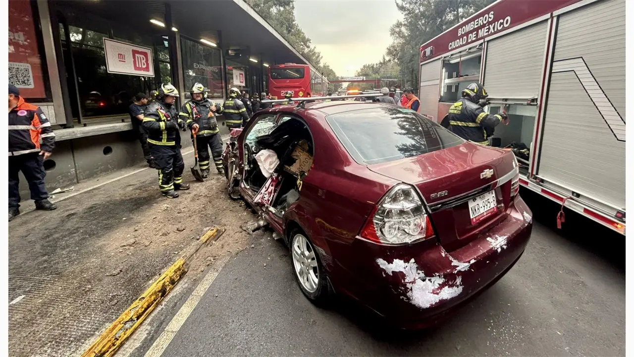 El siniestro se registró a la altura de la estación Tlacotal, sobre la ruta que conecta Tacubaya con Tepalcates, una de las más concurridas del sistema de transporte capitalino. Testigos alertaron a los servicios de emergencia al observar que el auto compacto había quedado con la parte frontal completamente destrozada tras impactarse contra el Metrobús.