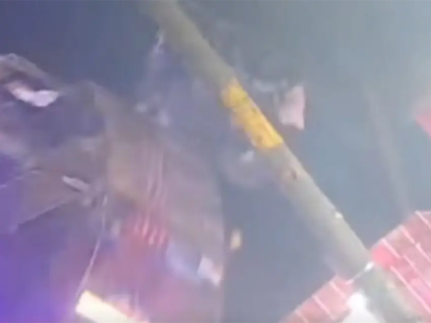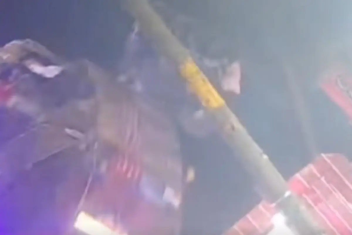 En el video se aprecia cómo la atracción ya había alcanzado una inclinación casi vertical, una posición clave en su mecánica, cuando un segmento de la pared metálica que rodea la plataforma se desprende. En cuestión de segundos, tres personas salen proyectadas por el aire y caen violentamente sobre el asfalto, generando gritos, pánico y confusión entre los asistentes.