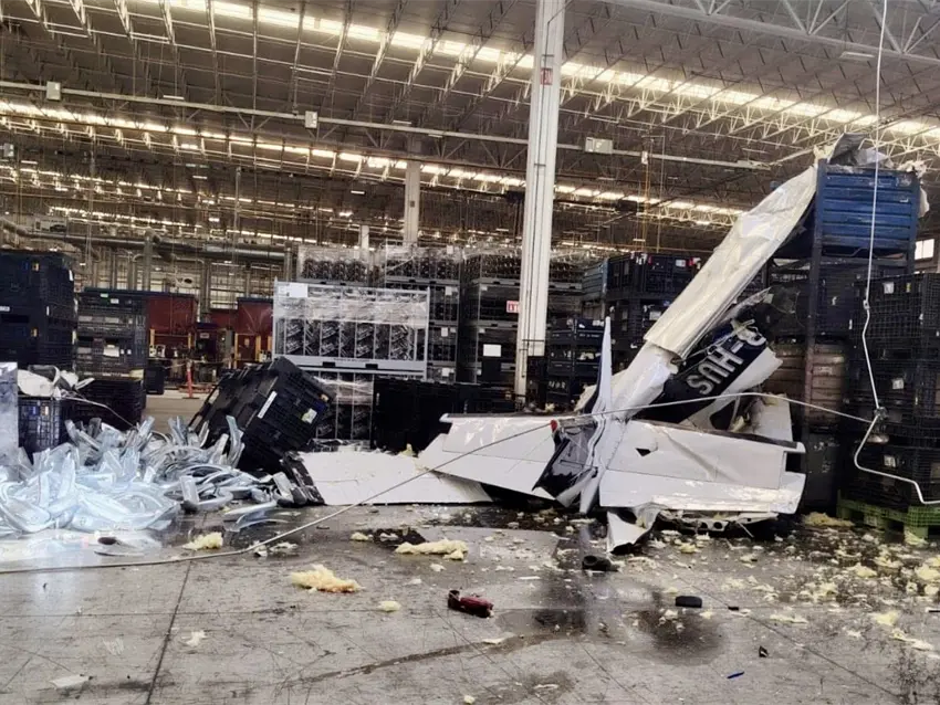 El área fue acordonada de forma preventiva para facilitar las labores de inspección, retiro de restos de la aeronave y evaluación de daños estructurales en la nave industrial afectada.