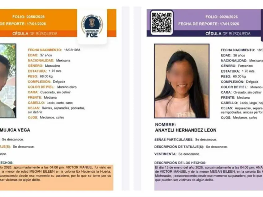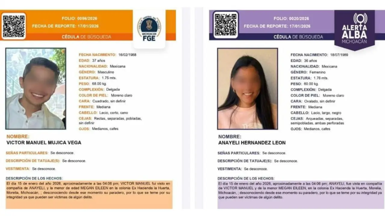 Víctor Manuel, de 37 años, y Anayeli, de 36, eran intérpretes de Lengua de Señas Mexicana. Su hija Megan, de 12 años, estudiaba la secundaria. Los tres desaparecieron el 14 de enero y fueron hallados sin vida tres días después en el municipio de Zinapécuaro. Los detalles del caso fueron presentados durante la audiencia de formulación de imputación en la causa 71/2026, celebrada en Morelia.