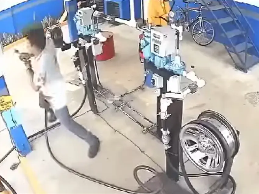 De acuerdo con lo que se observa en el clip, uno de los trabajadores se encontraba manipulando una manguera conectada al suministro de gas LP. En un momento de descuido por parte de uno de los agresores, el empleado aprovechó la cercanía y roció directamente a los ladrones con el gas, provocando confusión y desorden entre los atacantes.