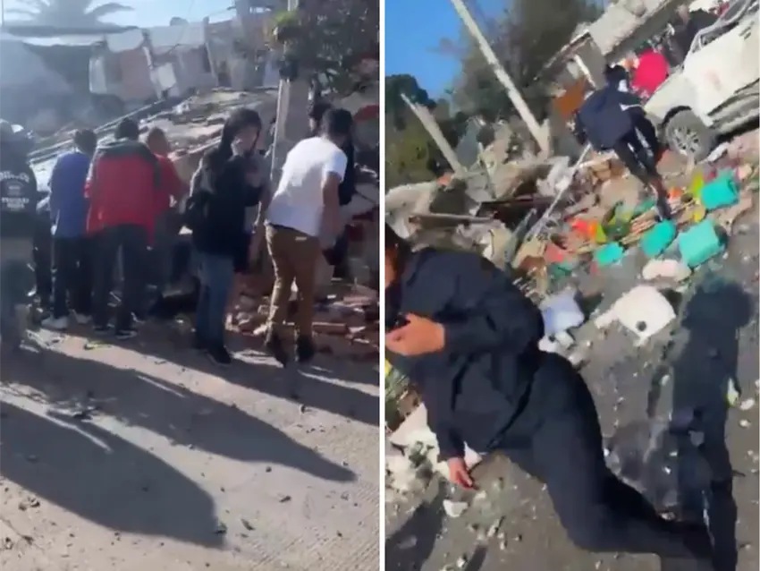 Las imágenes difundidas tras el incidente muestran el nivel de afectación en las viviendas cercanas al punto de origen. De acuerdo con los reportes preliminares, una casa colapsó por completo, mientras otras registraron daños en fachadas y estructuras. Entre las afectaciones visibles se encuentran: