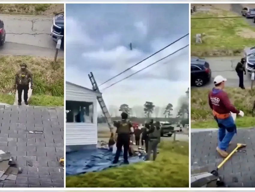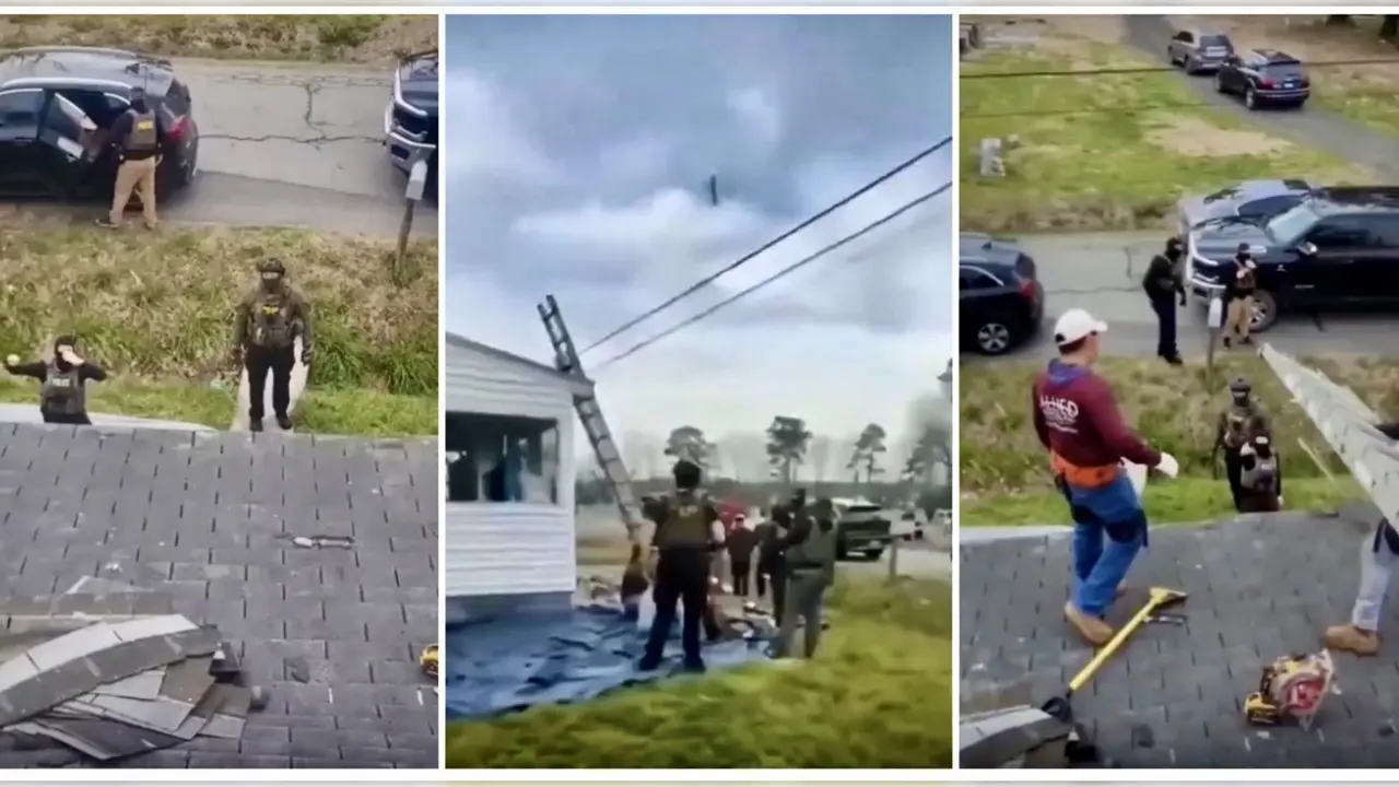 Las imágenes también muestran a otro trabajador que se encontraba en el techo de la casa, grabando el momento en que los agentes rodearon el lugar y les ordenaron descender para proceder con su detención.