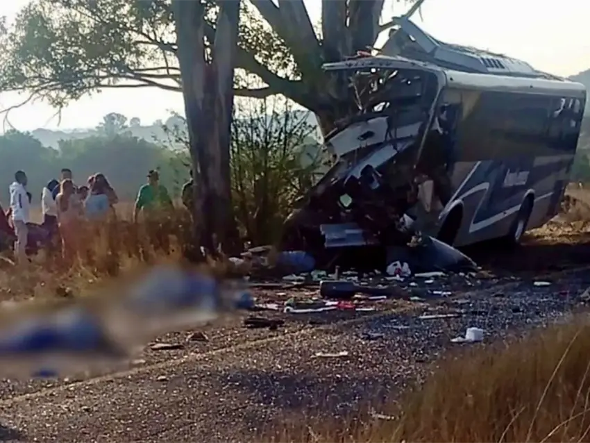 De acuerdo con reportes preliminares, el conductor del autobús habría perdido el control del vehículo por causas que aún no han sido determinadas. La unidad terminó saliéndose del camino y se impactó de forma directa contra un árbol a un costado de la vía.