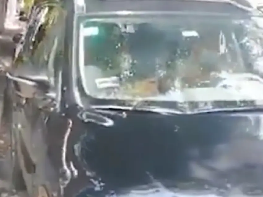 A través de un video que circula en redes sociales se puede ver a Gálvez a bordo de una camioneta usando el celular, mientras las y los vecinos le gritan "fuera".